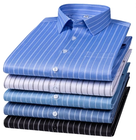 เสื้อเชิ้ตแขนยาวสำหรับผู้ชายเสื้อเชิ้ตแนวธุรกิจลำลองผ้าโพลีเอสเตอร์ลายทางเต็มตัวสำหรับนักธุรกิจ100% แบบทางการ